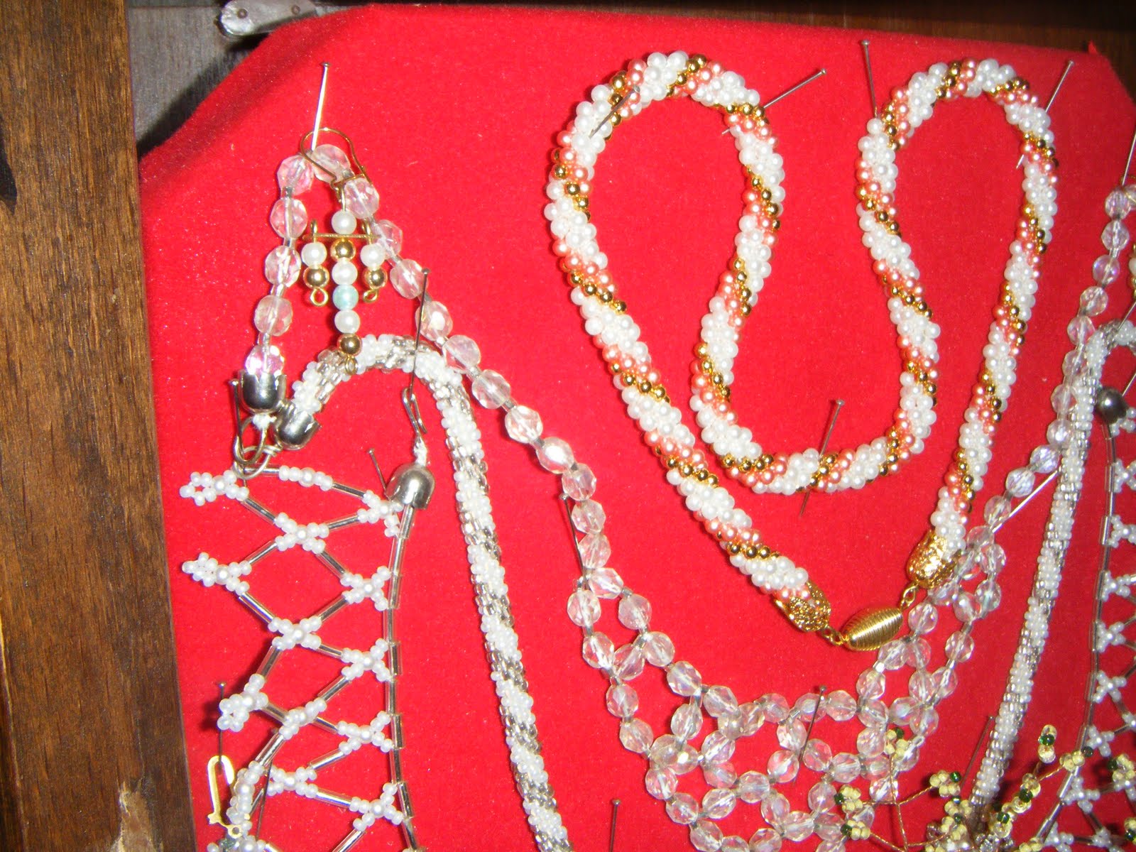 Y esto es parte de los trabajitos de la abuela que hace gargantillas de puntillas con rocallas y forma parte de su vitrina particular.